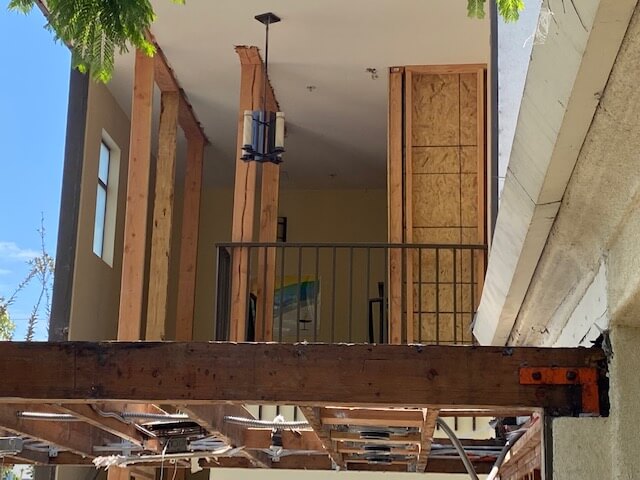 Demolition and removal of old materials has begun. The 1961 walls and windows were removed first. Then, demolition and jackhammering out the concrete. The demolition will followed soon by digging the footings. Once complete, the soil engineer will verify the work prior to city inspection. Then the contractor can set begin creating our new entryway.