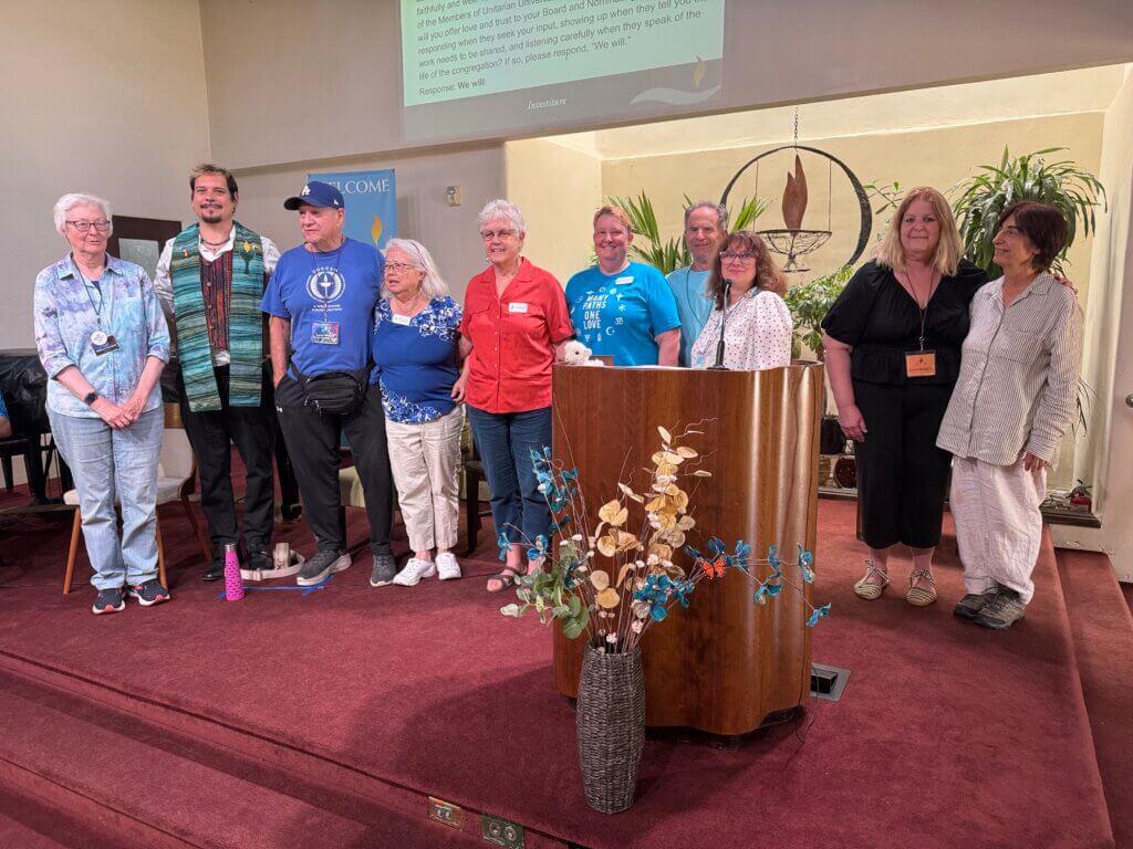 We are also thankful for all those who have stood for election in our community. Our Leadership Development and Nominating Committee has been extremely busy working with our board and membership team to canvas the congregation to nominate a slate of candidates for our Ministerial Search Team and the Board. I’d like to thank Erik, John, Hayjo, Wendi, and Robbert for your leadership and all those who have stood for election or been elected at the Special Meeting of the Congregation or who may be elected shortly at this Annual Meeting. If you have served on our professional staff, on our board of directors, the leadership development and nominating committee, the personnel, finance, or communications committees, or stood for election to our Ministerial Search Committee or our Board of Directors in the past congregational year, please rise in body or spirit and be recognized by your beloved community.