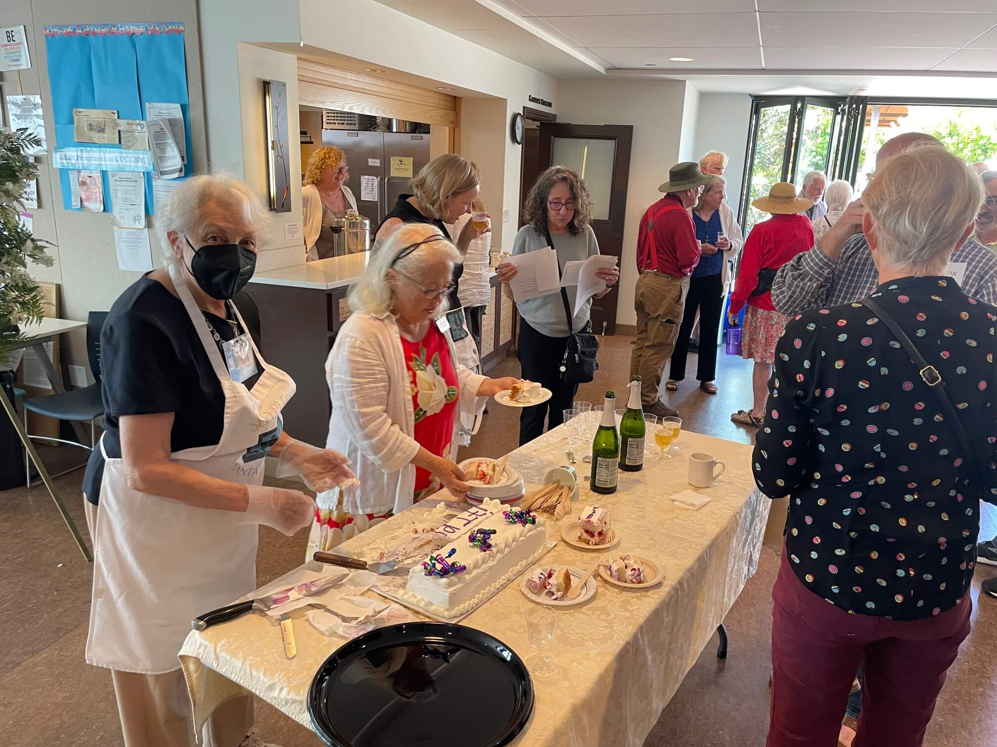 On June 30, UUSM celebrated the completion of the Arizona Lobby renovation project. Board Vice President Vilma Ortiz cut the ribbon connecting Forbes Hall with the lobby and Rev. Jeremiah Kalendae sprinkled the entrance with sacred water collected from our Water Communion In-Gathering service every year, noting the importance of a welcoming entrance, accessibility, and safety which are all improved by the project.